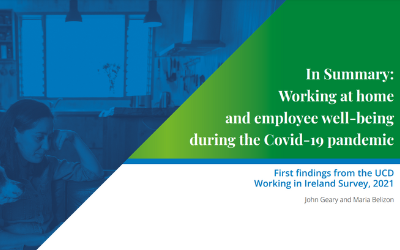 This is the second in a series of reports detailing preliminary findings from the UCD Working in Ireland Survey, 2021. This report looks specifically at the effects of homeworking on workers’ health and well-being across Ireland, their preferences for future working arrangements, and the implications for employers. The paper’s findings are important because they derive from the only representative survey of workers’ views of homeworking and well-being during the Covid-19 pandemic to date. Previous surveys have relied on convenience samples or were undertaken as pilot surveys.