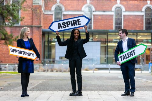 Professor Gerardine Doyle, Director of UCD Smurfit School and Associate Dean of UCD College of Business joins Aspire Scholar Ifeloluwa William Funmilayo and President of the Aspire Scholarship Programme Stu Garrett for the launch of the 2022 application window.