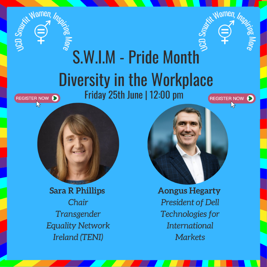 On Friday the 25th of June, UCD Smurfit Women, Inspiring More will host a Pride Month Webinar: Diversity in the Workplace. The event will feature Sara R. Phillips, Chair of the Transgender Equality Network Ireland (TENI) and Aongus Hegarty, President of Dell Technologies for International Markets.
