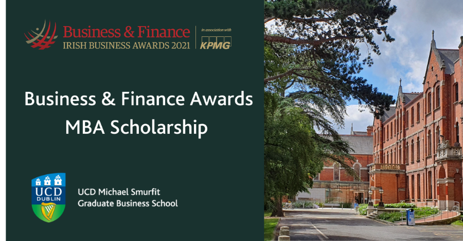 The new Business & Finance Awards UCD Smurfit School MBA Scholarship will support one high-calibre applicant with a 100% scholarship to join the full-time MBA, the Executive MBA or the Modular Executive MBA beginning in August 2021.
