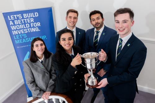 Thursday, 23 February 2023- The CFA Ireland Research Challenge was hosted by Prescient Fund Services and the team that participated from UCD Smurfit School was comprised of students from the MSc (Finance) and MSc (Quantitative Finance) programmes. UCD Smurfit School competed against Trinity College Dublin, University College Cork, University of Galway, and Queens University Belfast. The UCD Smurfit School team won the competition and are now the CFA Ireland Research Challenge Champions 2023, having previously won the competition in 2022 and 2018.