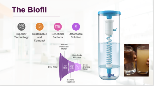 “We had secured agreement in principal by the Government of India, Department of Water and Sanitation to purchase and distribute Biofil to10,000 households in an initial pilot phase. We also had agreement from a social enterprise in India, which could use recycled plastic to manufacture the units at low cost. This also had the added benefit of providing employment locally.”