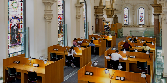 Our UCD Smurfit School Library is a modern library housed within a 19th -century chapel with wi-fi and power points for individual study and group work.
